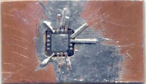 Después de que los conductores han todo ha soldado, el espacio entre los conductores se recortan a las islas de la forma y los otros componentes se sueldan a estas islas de cobre.