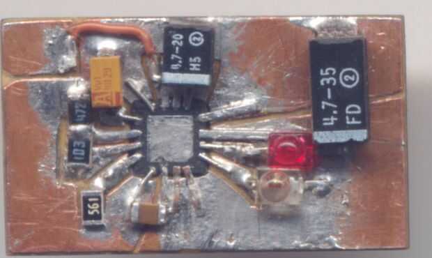 El led rojo se supone a la luz hasta que nos informan de condiciones de error. Otros verde ilumina el LED (uno claro en la imagen) indicar la carga está teniendo lugar. Al final de la carga, que parpadee o salir, según el último dígito del número de parte de ic.