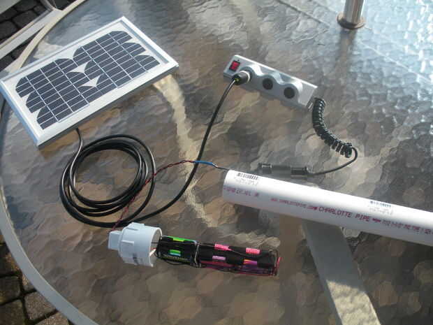 También, puesto que la célula solar es de sólo 5 watts, la célula puede producir solamente sobre 250mA de corriente (pico en pleno sol). La corriente de carga de 250mA está muy por debajo de la C 1 actual que pueden manejar las baterías. Además, el pico de salida nunca duran mucho tiempo. La producción media es más como 150 a 200 mA. Sin embargo, si las baterías están completamente cargadas, el 250mA obtener convertirá desperdiciar calor en su lugar. He probado esto, las baterías sólo haz ligeramente tibia si 250mA Corriente de carga se aplica a una batería de carga completamente. Ningún daño es hecho. Hay una cosa que sé, las baterías de NiMH no gustan estar lenta por días y días. Para mi aplicación, no merece la pena preocuparse ya que mis viajes nunca que duran mucho.