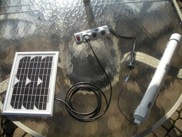 El panel solar de 5 vatios (8.5 x 12 pulgadas) tiene un diodo de bloqueo. Por lo tanto, cuando el sol se esconde, no jugo Haz malgastarán por fluir hacia el panel solar. El panel solar solo carga el paquete de batería si el voltaje de la célula solar es mayor que el voltaje del paquete de la batería principal. Es muy útil.