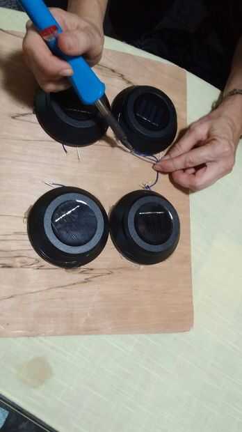 Usando la soldadura hierro extra de alambre y soldar todos los cables negativos (-) de los paneles solares entre sí.