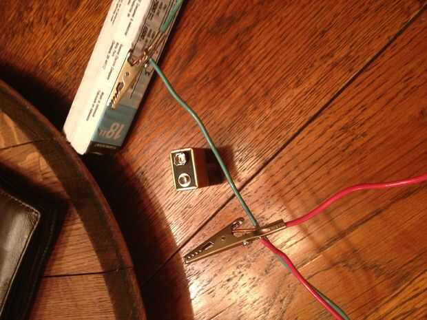 2. a continuación poner los cables de puenteo poco en los extremos positivos y negativos respectivos del titular. No necesario para 9V.