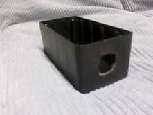 El siguiente agujero se corta en la parte inferior de la caja del proyecto. Permanente el cuadro de proyecto para arriba verticalmente, el agujero se corta en el lado cuadrado pequeño que quede mirando hacia arriba en el aire. El agujero debe ser lo suficientemente grande como para tener la toma de corriente de 12VDC cabe, pero pequeño suficiente para mantener ajustada. Básicamente empezar con poco y tener pruebas para ver si se adapta a la toma de corriente. Usted siempre puede hacer más grande el agujero, pero no puede hacer más pequeño... tan fácil.