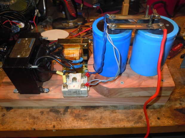 primer intento en un banco de capacitores y el cargador... Sé que hay otros pero igual siempre todo el mundo tiene una experiencia diferente haciendo tales cosas su propio camino como yo, así que bien por referencia.No ser un verdadero Banco como sól