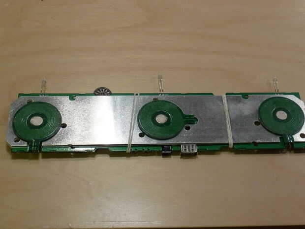 Desarmar la inducción de Powermat mat de carga.  Hay tornillos debajo de las patas de goma.  Quite los tornillos y levante aparte la estera.