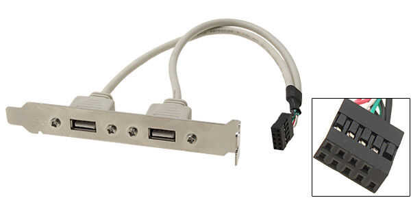 La primera foto es un par de enchufes USB de una computadora de escritorio. Estas son una buena opción ya que se encuentran gratis en cualquier pila de basura de equipo y los cables rojo y negro ya están averiguados para usted. No corte los otros alambres; usted tendrá que poner resistencias en ellos más adelante.