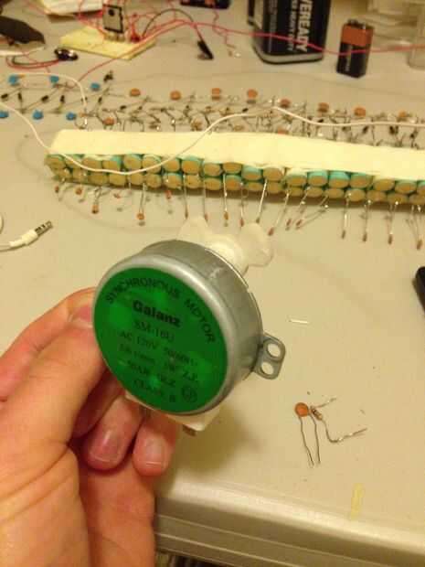 Es necesario un transformador reductor para disminuir la tensión de la sinusoide generada por el motor. Transformadores se pueden encontrar en casi cada pieza de la electrónica que se conecta a una pared. El primario precisa relación secundaria del transformador dependerá de la tensión producida por el motor que utilizas. En mi caso, utilicé un transformador de 120:12.6 (aprox. 10:1) de RadioShack.