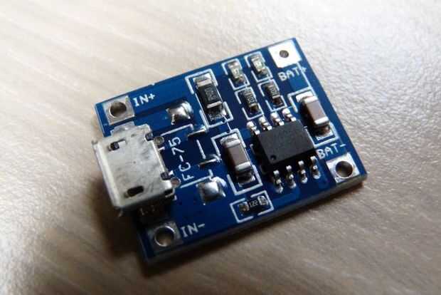 Para cargar ya hackeado una placa de circuito de cargador de batería de litio con un chip de TP4056.