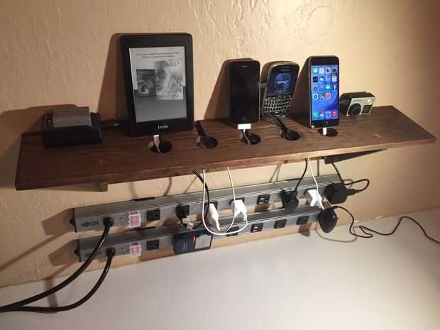 He encontrado que la estación de carga es conveniente para mantener los aparatos electrónicos y los cables fuera del camino. Y le ayuda a recuperar tu contador como espacio de trabajo usable!