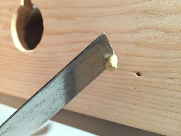 Consejo: frote suavemente la superficie con una toalla de papel húmeda después de alisar la masilla para madera. Que desea quitar como relleno todo el exceso de la madera como sea posible, de lo contrario afecta a la mancha.