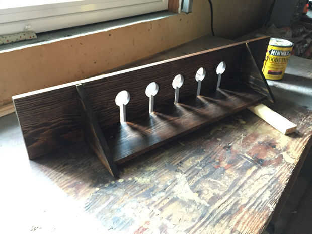 Luego limpie en una mancha. Usé un tinte jacobino MinWax. Déjelo secar.