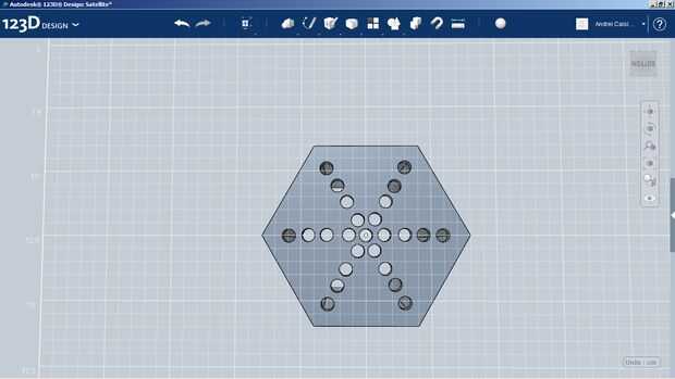 Above you can see how I made the case of the Satellite Charger. Primero hice un hexágono, luego hice una cámara en su interior. Después de eso, hice unos agujeros para LED ' s para poder utilizar el cargador como una lámpara demasiado.