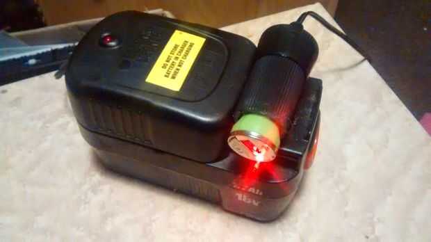 Conecte el conductor de la Junta de un zócalo del cigarrillo del coche, cargador USB que se muestra es un tipo de 12-24 V y la batería es una batería de 18V.