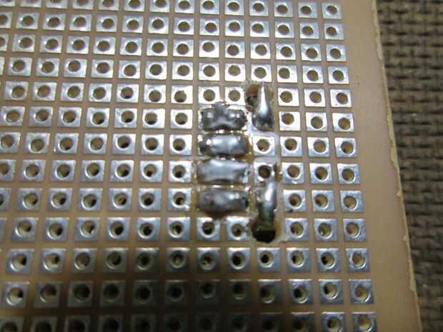 -Soldar el + 5V terminales y GND del conector de la PCB (no necesita soldar las líneas de datos pero para soldarles haría el conector alojarte firme). Luego soldar un encabezado macho cerca de ella y enlazarlos.