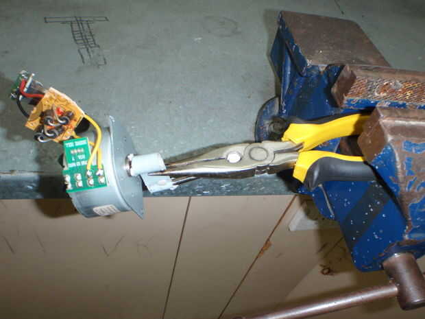 Hallazgos de siguiente un producto llamado amasan lo que es un cemento masilla secado rápido como cosas. MacGyver a corta un trozo y funciona como goma de mascar hasta que cambios de color, utiliza esto para enlazar el brazo del motor paso a paso y la manija del palillo en. Se tarda aproximadamente 5 minutos para curar, así que necesita ser afianzado con abrazadera para que se pega y luego hes listo para cargar su teléfono, hacer una llamada y haz liberado de su prisión de MacGyver y Pete Dive en los arbustos, justo antes de que la bomba explota.