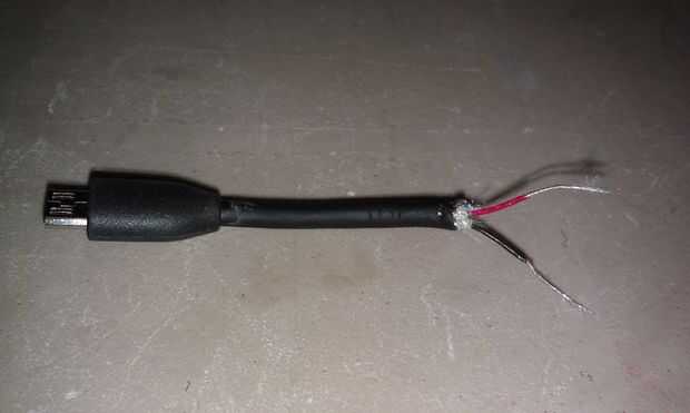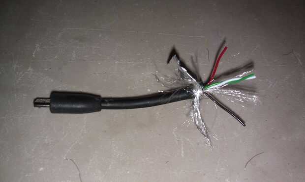 1, corte el cable, dejando aproximadamente 3-4 pulgadas de la parte que se conecta al teléfono. Necesitará el cable detrás de la tira y notarás cierto aislamiento, probablemente algún papel y 4 cables: rojo (+), negro (-) y los cables verdes y blanco (datos). Corte para que deje solo el rojo y negro cables restantes. Los cables verdes y blanco son sólo para la transferencia de datos, que no hará. Que conduce a un punto interesante - este cargador no puede usarse para un iphone porque Apple crea teléfonos que corriente de los cables de datos - creo que alrededor de 2v cada uno. A pesar de que podría hacer algo para cargar un iphone, sería necesario resistencias a la tensión en estos 2 cables. No tengo un iphone, por lo que no me importaba hacerlo.