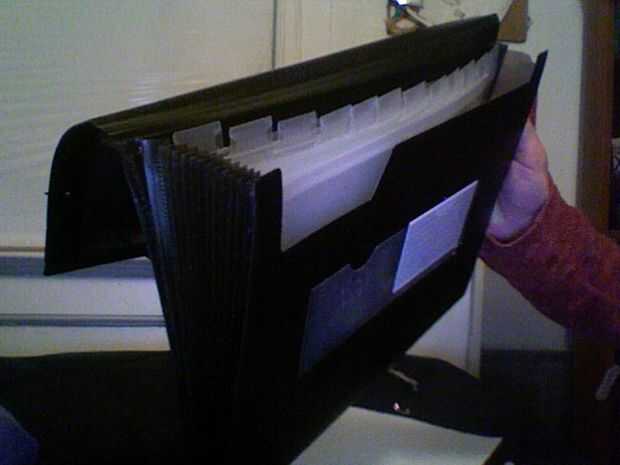 > Un binder / carpeta de archivo... debe ser material que encaja nuevamente a su forma original después de doblarla