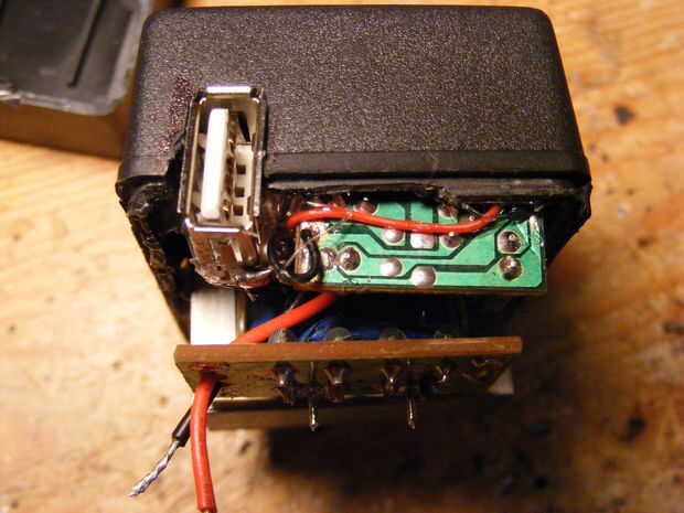 Módulo de cargador USB configurar dentro de una caja de proyecto, junto con la energía del LED indicador (opcional)Propósito de la unidad, es para conectar a cualquier dispositivo de la colección de las energías renovables, panel solar, viento dispos