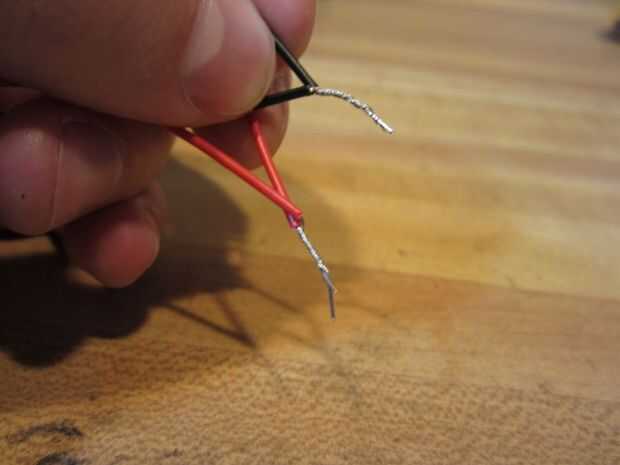 Retorcer el positivo de la batería y el conector de 2,5 mm juntos. (Que deben ser rojos si seguimos las instrucciones.)
