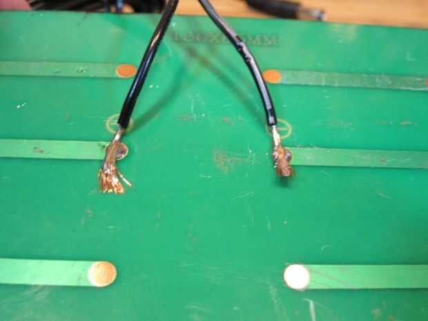 Ahora solo soldar los cables a sus puntos respectivos en la célula solar. Franja blanca cable a negativoy todo negro el cable al positivo.