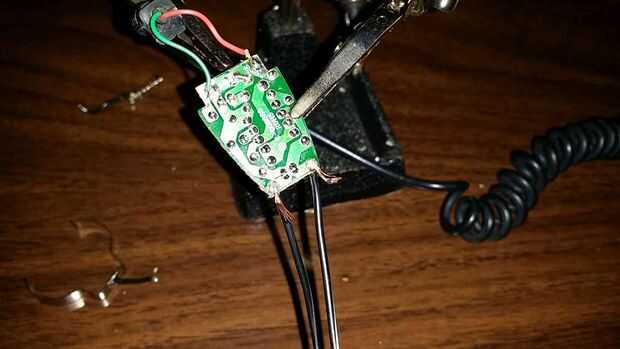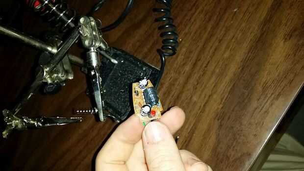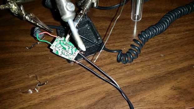 Positivos y negativos se indican en el costado del componente de la Junta. VCC = positivo en tierra derecha = negativo a la izquierda. Inserte los extremos en el agujero correspondiente las pliegan Inserte la Junta en las manos terceros y asegure el cable con poco de soldadura. Recorte el exceso después de la soldadura se enfríe y prueba de la articulación con un leve tirón.