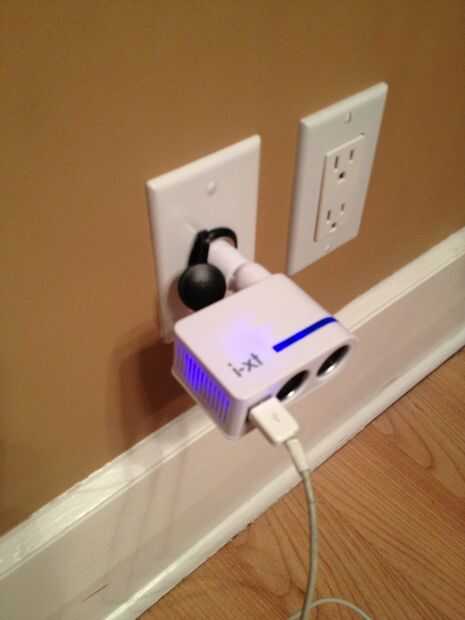 Colocar las baterías y el regulador en el sótano cerca de la ventana que está montado el panel bajo. La salida del controlador entonces conduce a un tomacorriente de pared estándar que ha sido modificado para aceptar un enchufe estándar de 12V. Se encuentra en la cocina. Esto entonces se puede utilizar con cualquier tipo de adaptador para poder o cargar pequeños dispositivos independientes del sistema eléctrico principal.