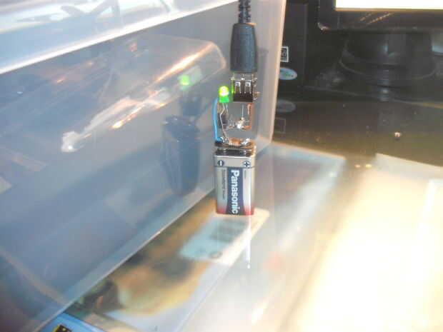El cargador de la imagen ya está funcionando - se ya carga mi celular ayer por la noche. Pero todavía necesita ser cerrado dentro de algún caso, que debe ser la caja de la batería de 9v impidió es desarmar proceso.
