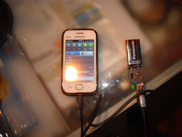 El resultado debe ser como se muestra en la imagen, donde podemos ver el cargador de carga de la batería de mi móvil y podemos leer en Portugués: "Bateria está sendo carregada" - la batería se está cargando... ;)