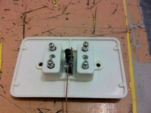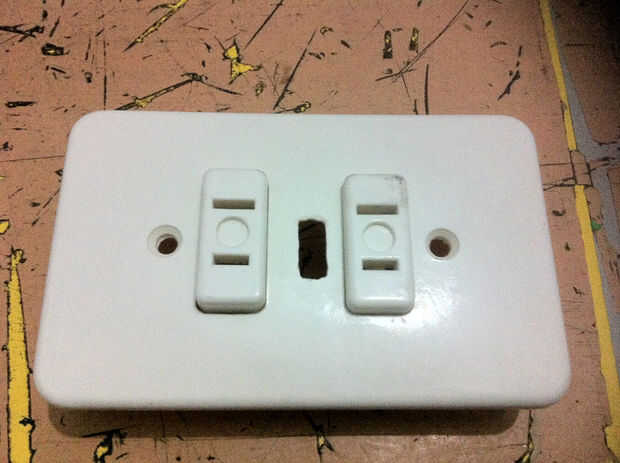 Primero, marcar la forma del USB, dentro de la toma de corriente y hacer un par de agujeros con un taladro.