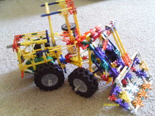 con un niño enamorado de vehículos de todo tipo, surgió con el diseño de cargador frontal se muestra al pensar en el regalo perfecto. Láser corte de 1/8" multilaminada de abedul báltica con unas espigas de ejes y pivotes y celebró junto con pegament