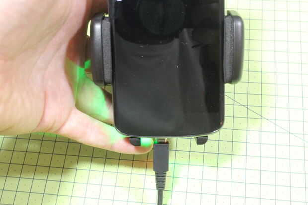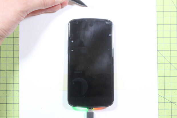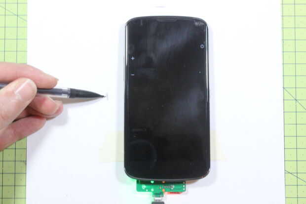 — Deslice el teléfono hacia arriba, abajo, izquierda y derecha sobre el bucle inalámbrico para encontrar la tolerancia de radio carga del teléfono. (Tristemente, hasta abajo, abajo, izquierda, derecha, izquierda, derecha no desbloquea a un truco aquí)