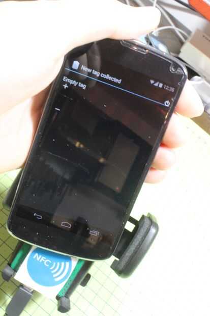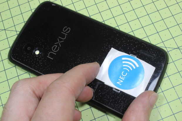 — Meneo alrededor de la etiqueta NFC en la parte posterior del teléfono para encontrar que es lector de NFC
