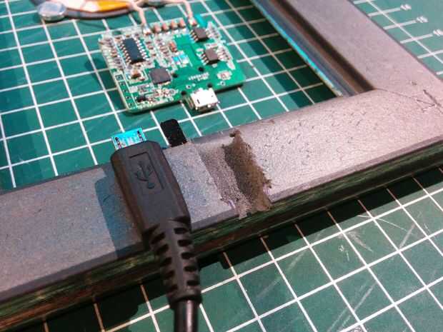 Empezar por desarmar el marco y rastreo en la parte trasera de la posición que tu cable para entrar. Luego empiece a cortar lejos hasta que el cable quede cómodamente dentro del marco. No olvide probar el ajuste después de cada algunos cortes porque no se pueden agregar material detrás otra vez.