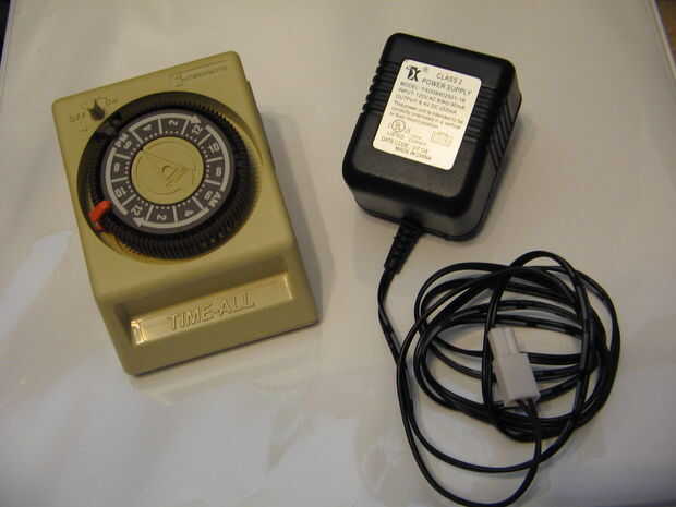 1 temporizador de jardín baratos wal-mart. (alrededor de 5 a 10 dólares)