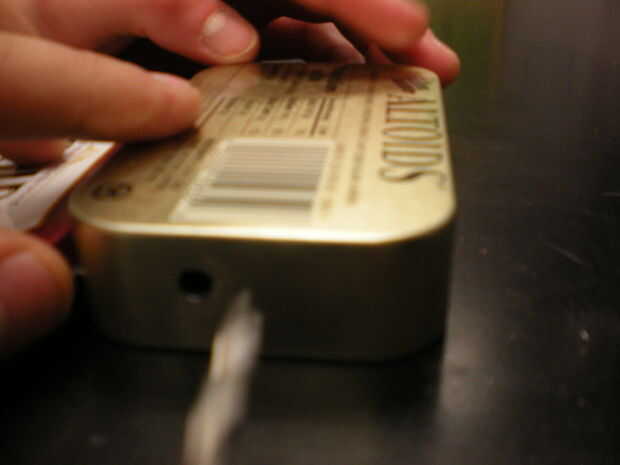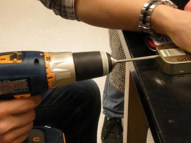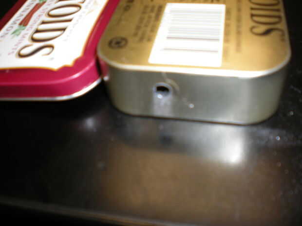 Sólo es necesario si la célula solar es para ser montado en la parte superior o inferior de la lata el otro agujero. Si este es el caso, debe crear un agujero lo suficientemente grande como para caber cómodamente su cable a través de. Una vez más, unas tijeras taladro y estaño funcionan bien para este trabajo.