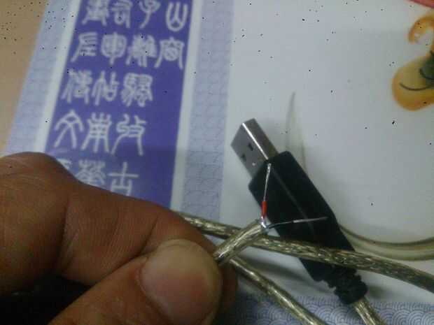 Cable de ratón viejo tiene cuatro cables. Los cables verde y blanco son para el envío de datos, no necesitan tan sólo les cortó dejando el rojo y negro unos.