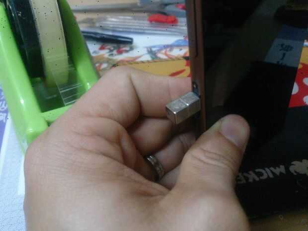 El uso de cinta adhesiva también evitará rayaduras en su teléfono. Intente pegar el imán en su teléfono y asegúrese de que no mueva mucho. O usted puede pegar el plástico con un pegamento más fuerte antes de laminar con cinta adhesiva para anti-rasguña.