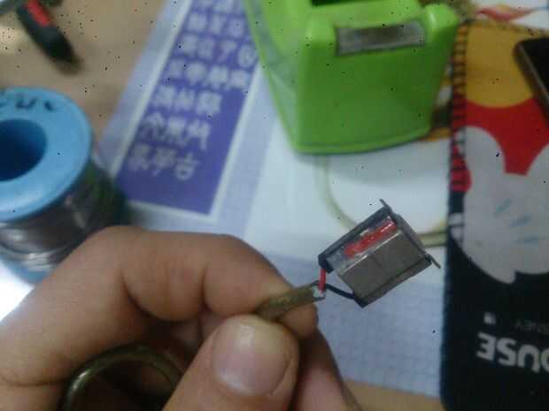 - Poner las clavijas rojas y negras en los lados del imán y envuélvalos con cinta adhesiva.