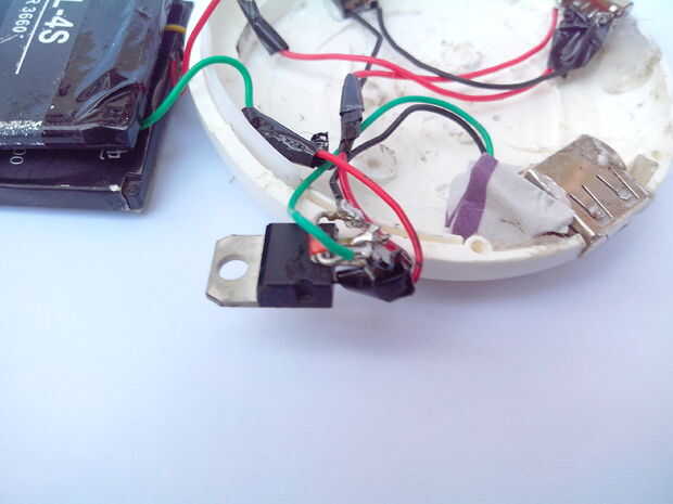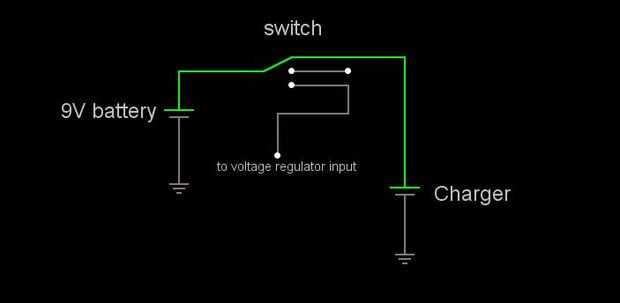 El circuito es muy simple y toma pocos minutos para construir. El circuito es solo un regulador de voltaje, es un regulador de 5v que da 5v salida de la batería de 9v recargable. He insertado un interruptor para mantener el circuito de apagado cuando no esté en uso y conseguir una vida más carga. Inserte el interruptor entre la entrada DC positivo. El otro pin del interruptor va al cargador. Esto nos da tres modos de operación uno interno de carga, apagado y luego un cargador USB.