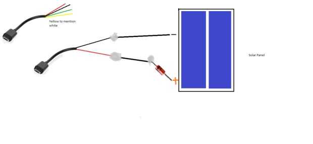 - Suelde el cable rojo del otg para el cable rojo del panel solar y cable negro del otg al cable negro del panel solar.