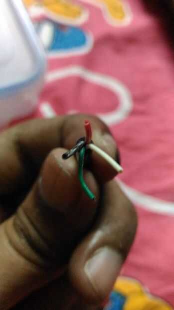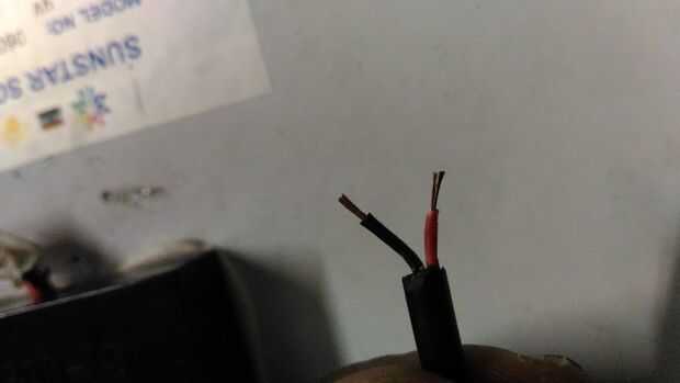 - Verás 4 hilos de lado a lado, entre los así que necesitamos solamente rojos y negros los, cortar los cables verdes y blancos (se utilizan para fines de transmisión de datos).