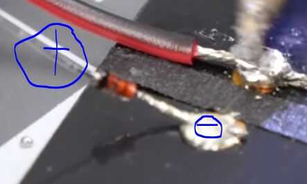 - de la soldadura de la parte del ánodo a la + ve del panel solar.