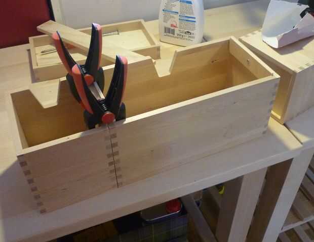 Pega cuatro tiras de madera (10 x 4 x 1 cm) hacia atrás para proporcionar un poco de espacio entre la caja y la pared y poner unos clavos pequeños en robustez extra.