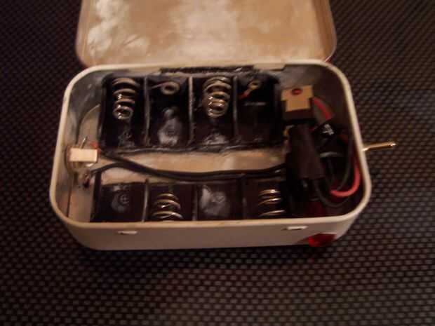 una vez que se corta, go ahead y seco introducirlo, poner en, inserte las pilas y empuje hasta un extremo de la lata como puede luego en super pegamento