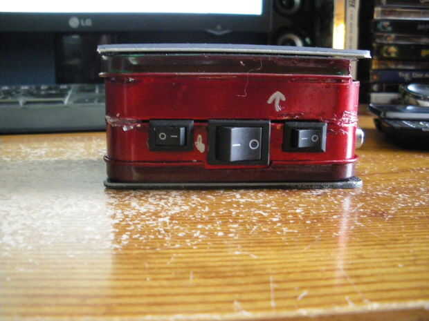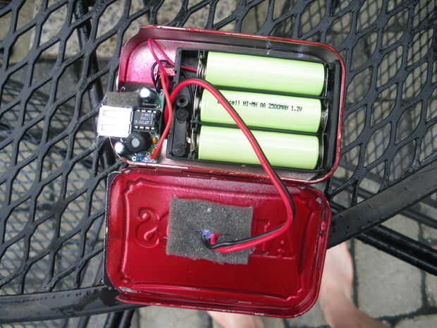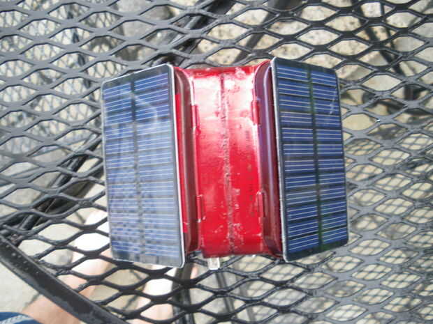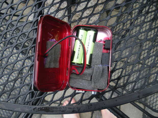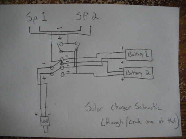 Así que en pocas palabras lo que tenemos aquí es latas de Altoids dos caliente pegado junto con cada "puerta" es un Panel Solar. Utilicé una herramienta dremel para hacer una abertura entre las dos latas, así como una apertura para la mintyboost y tomas de corriente para los interruptores. una lata tenemos los interruptores y un sostenedor de batería 2 AA y en la otra lata tenemos el MintyBoost y un soporte de AA 3. Como se muestra por mi crudo esquema los bancos de baterías son energizados por separado por los paneles con los dos interruptores SPST y el interruptor DPDT swaps entre los bancos. Es importante no conecte un dispositivo mientras se está cargando las pilas ya que el voltaje combinado de las fuentes de dos energía podría dañar el mintyboost ya que fue diseñado para intensificar la tensión no paso.