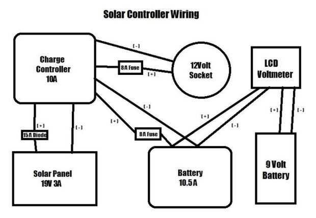 Gracias a khaleel123 y su dibujo "cableado regulador solar" (arriba) en su configuración de Panel Solar instructable alrededor de $100 - pudo conectar cosas