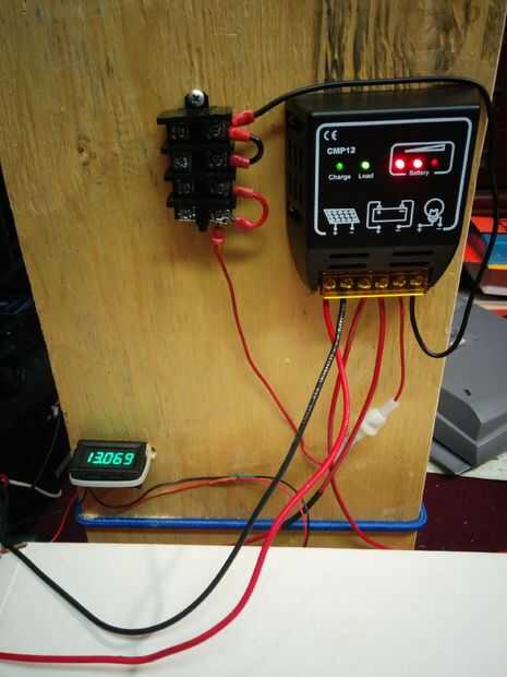El siguiente paso es conectar cables al poder del controlador de carga. Colocar una tira de barrera bornes con tornillos a la madera contrachapada al lado el controlador de carga. En la línea positiva que he añadido un fusible de 3amp. Esto simplemente es una suposición que no sé si 3A lo es bastante en los próximos semanas intentaré averiguar el valor apropiado. Creo que un interruptor es probablemente una buena idea incluir también en este momento.