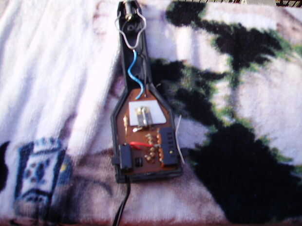 En su interior, podemos ver que no hay mucho demasiado de ellos. Todo lo que necesitamos aquí, sin embargo, son los terminales positivo y negativo. Son muy fáciles de encontrar. Sólo tienes que seguir los dos cables procedentes del eje a la pcb. En este caso, es el cable azul (positivo) y el negro uno (negativo). Negro casi siempre es negativo, pero si no estás seguro, basta con mirar a donde llevan los cables a. La negativa uno será siempre unir a lo pin elástico en la parte superior mientras que los aspectos positivos se van a los lados.