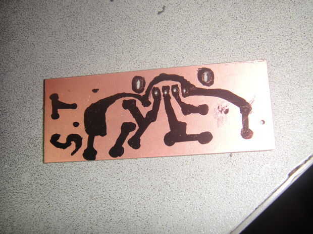 puede usar una presensitized o utilizar un marcador para cubrir las marcas en el proceso de la aguafuerte (eliminación de exceso de cobre)
