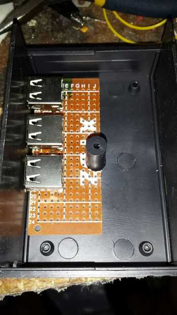 Como los 3 conectores USB son la principal característica de todo el dispositivo, colocó primero en el PCB. Se extiende ligeramente el borde del PCB.